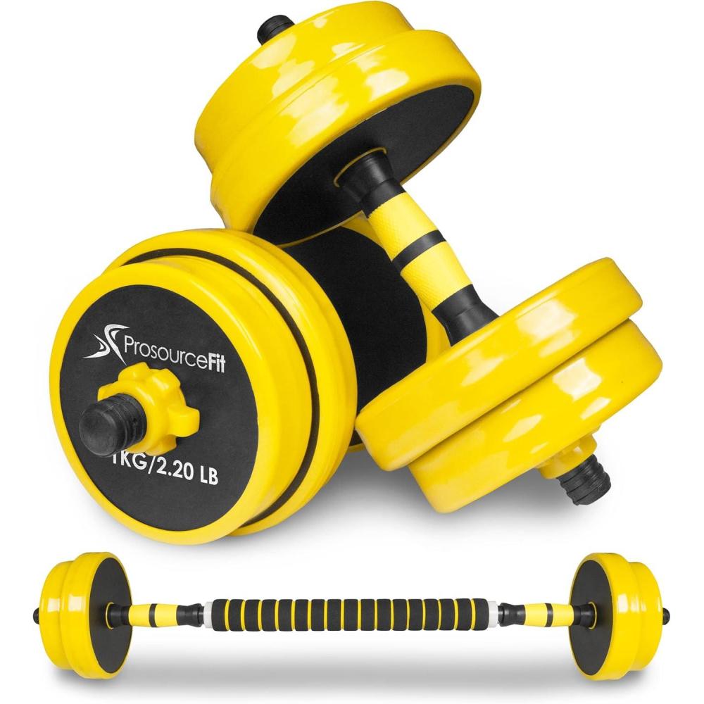 ProsourceFit Adjustable Dumbbell & Barbell Weight Set, 2-in-1 Free Weights Available, Home Gym Equipment(Yellow 22lb)