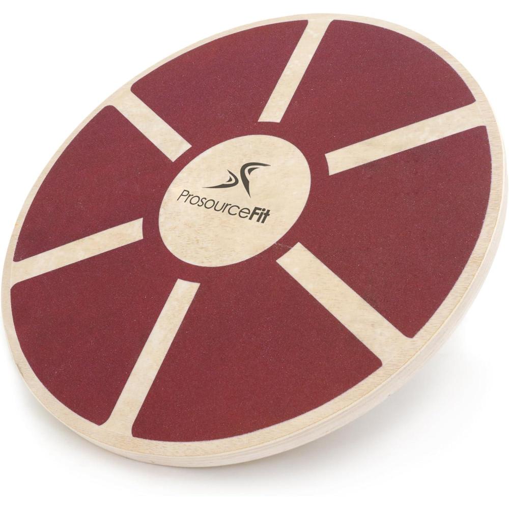 ProsourceFit Wooden Balance Board Non-Slip Wobble Core Trainer 15.75in (39.5cm) Diameter with 360 Rotation for Stability Training, Full Body Exercises, Physical Therapy(Red)