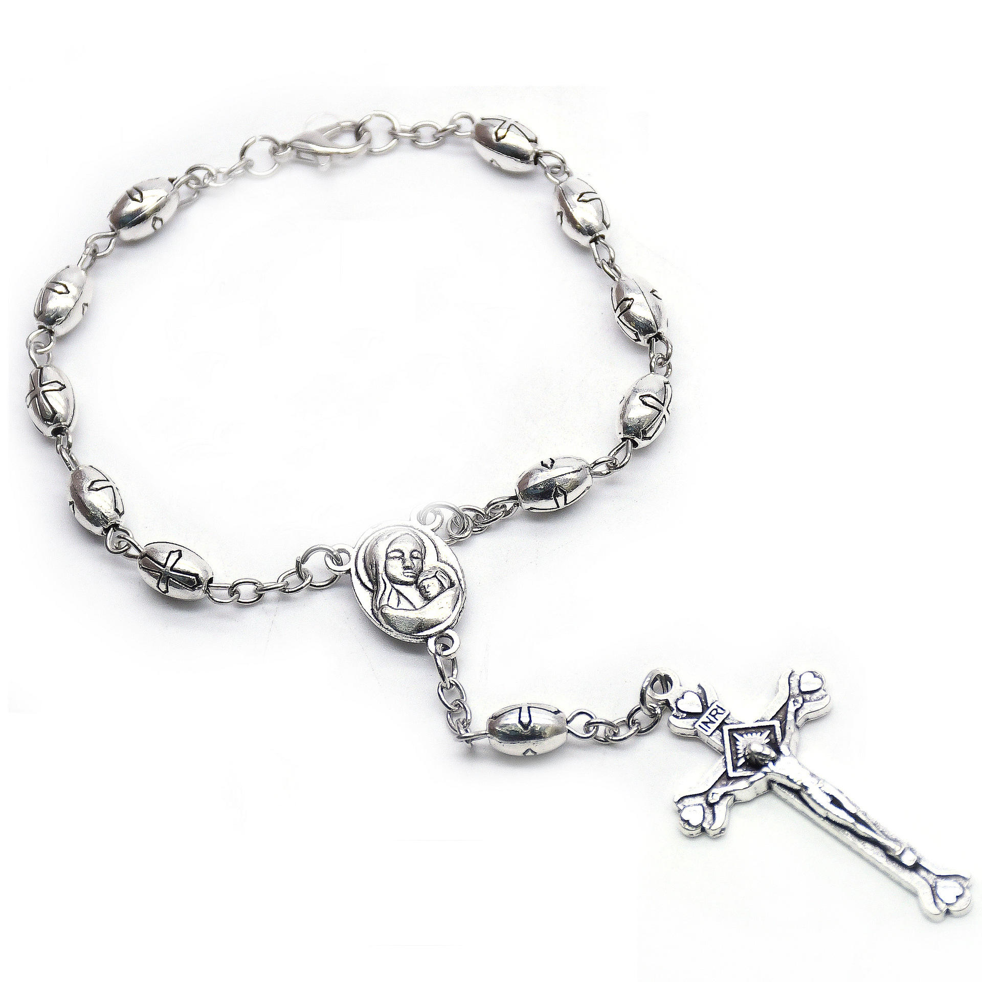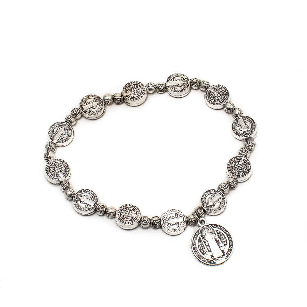Handmade Rosary Bracelet Elasticated Metal Bracelet Stations of the Cross Medals and Ccb Beads Rosary Prayer Bracelets
